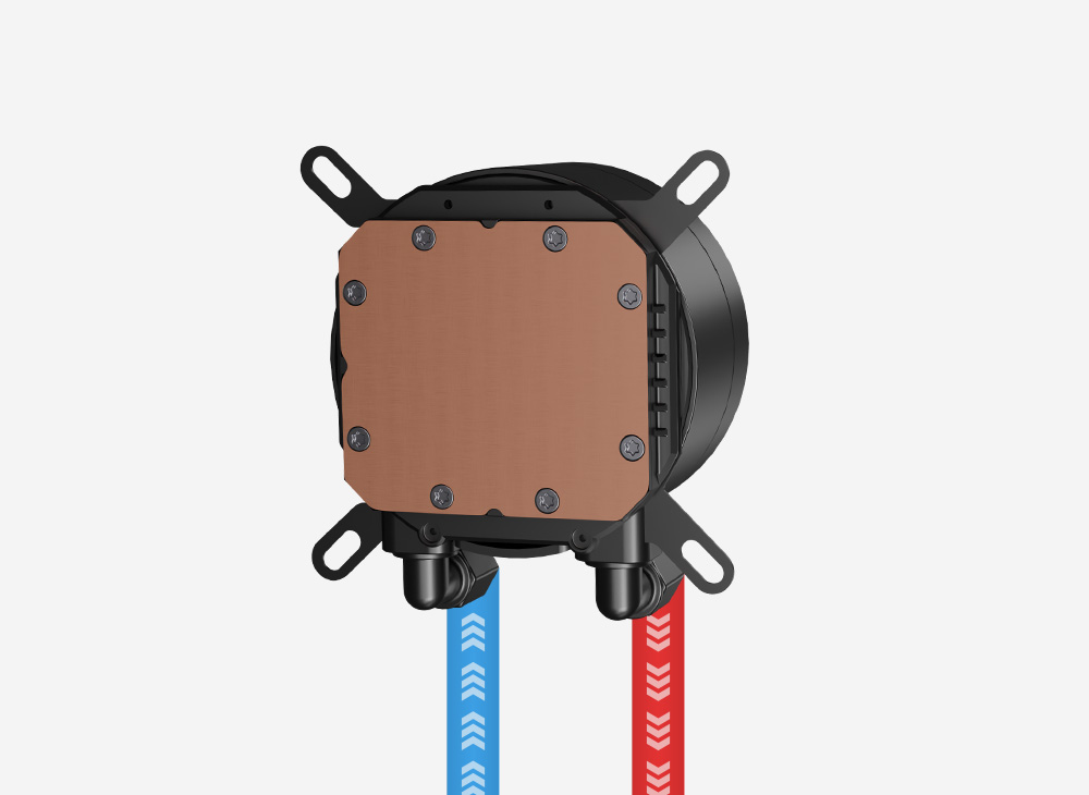 An high-speed pump paired with a large 55 × 60 mm copper base maximizes CPU contact area, enhancing heat absorption and delivering faster, more efficient thermal transfer.