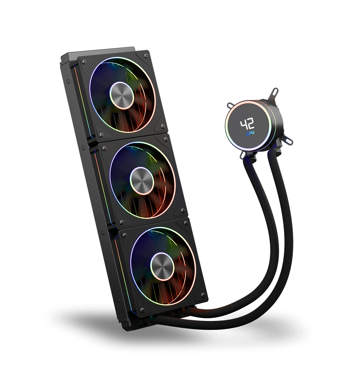 Addressable RGB lighting on both pump and fans, fully compatible with major motherboard lighting ecosystems for seamless visual integration.