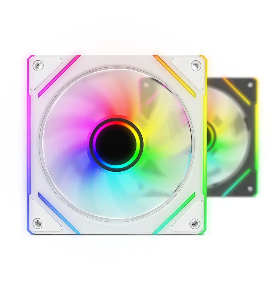 Zolyd Nova – a 120 mm fan in black or white, with vivid ARGB lighting and an eye-catching Infinity Mirror core framed by mirrored side panels for a dazzling look.
