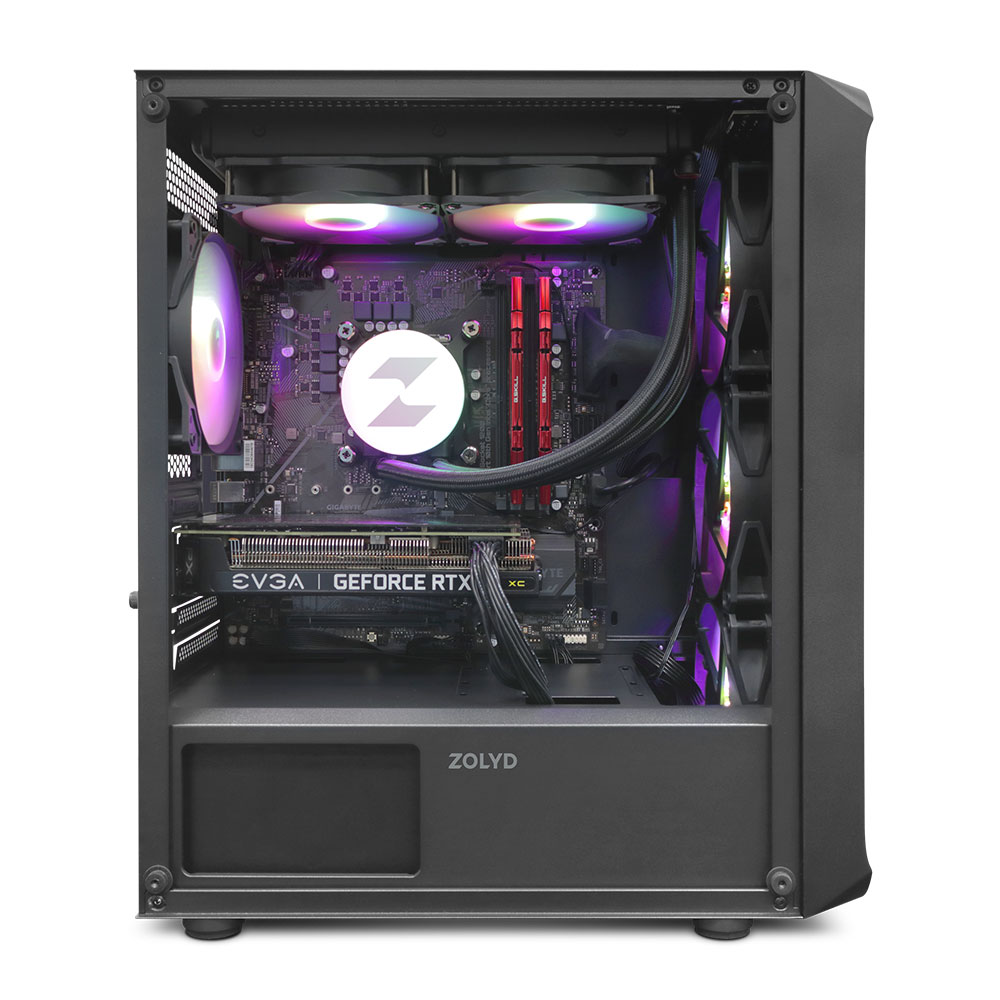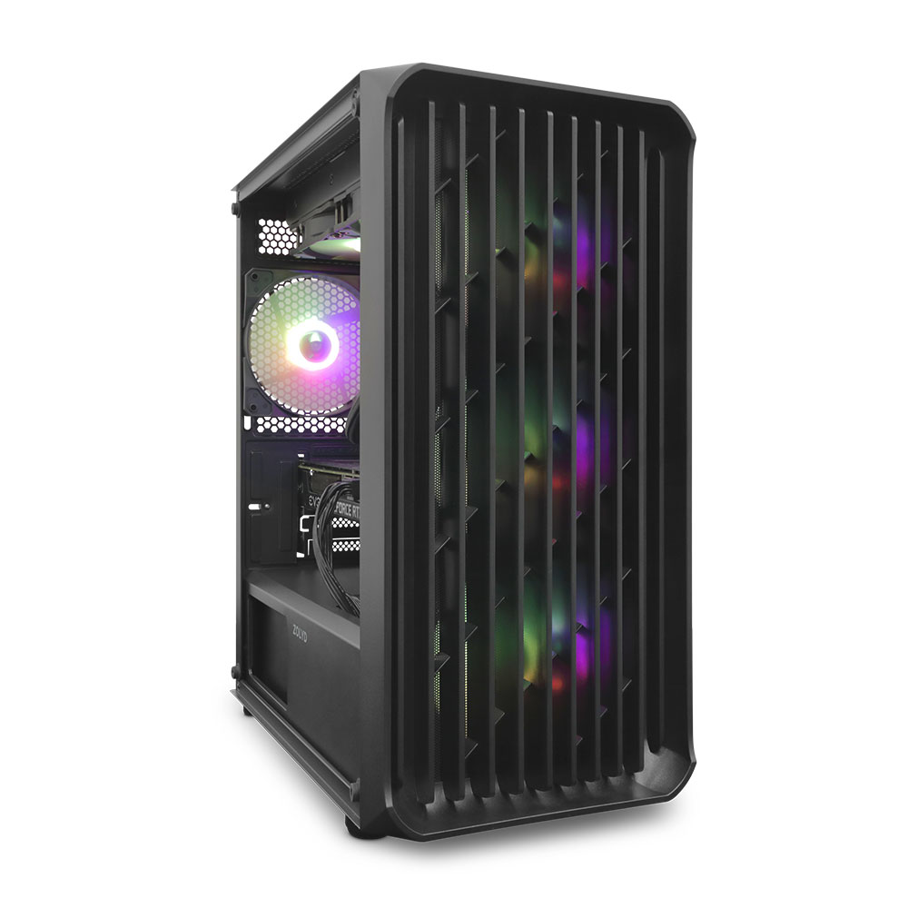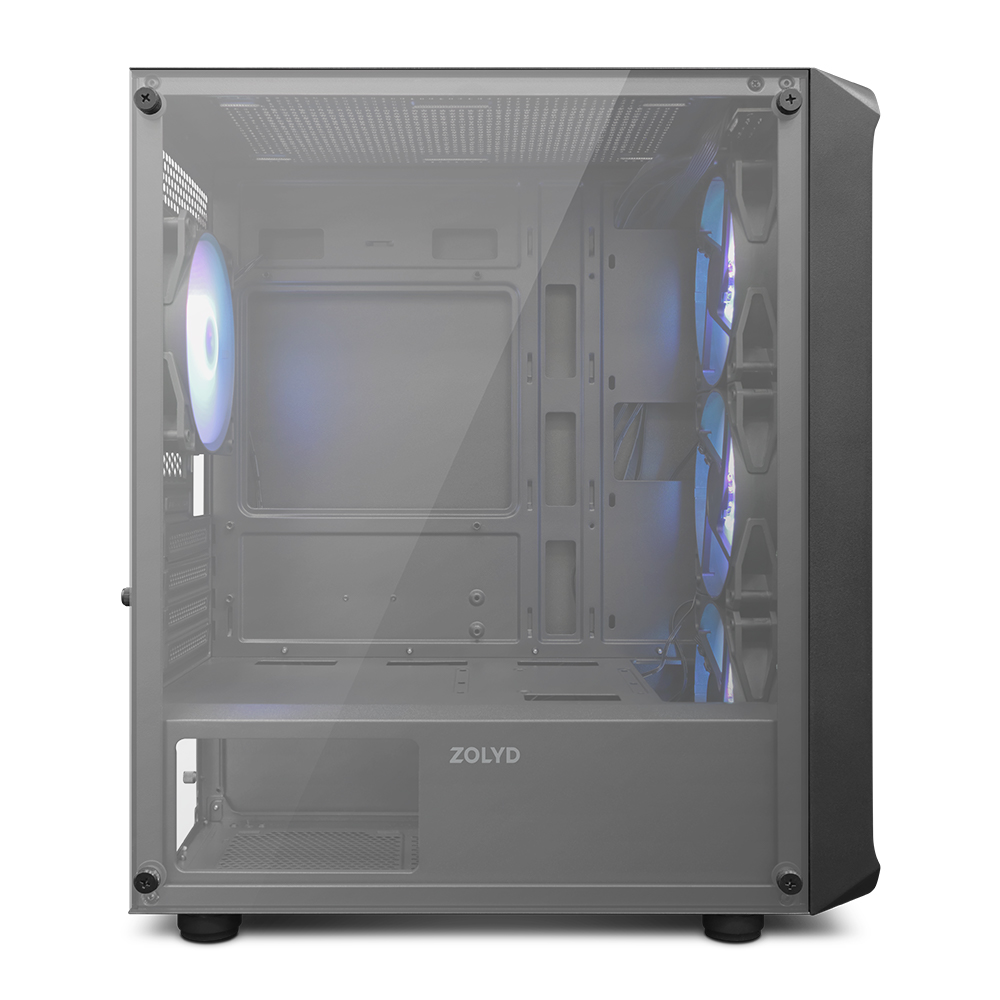 Zolyd Vyntrix, compatible with Micro-ATX and Mini-ITX motherboards, delivers great performance in a sleek form. Featuring a tempered glass side panel and a slated front for enhanced airflow, it includes 4 ARGB fans to light up your build. With support for additional cooling options, including liquid radiators up to 240 mm, it’s perfect for compact yet powerful setups.